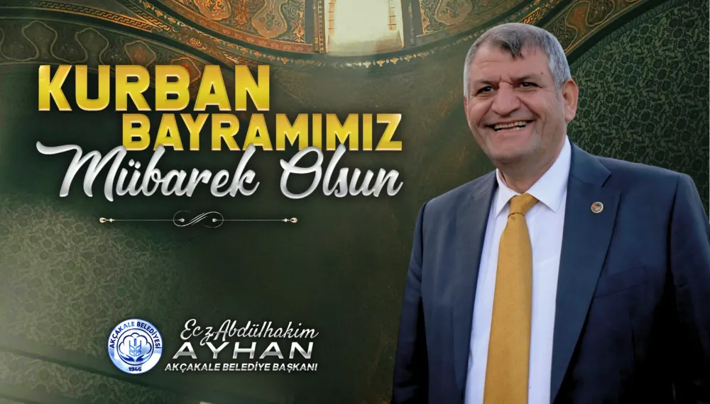 Bu bayramın, savaşların sona erdiği, çocukların güldüğü, coğrafyamızda barış ve huzurun hâkim olduğu yeni bir başlangıca vesile olmasını diliyorum. Kurban Bayramı vesilesiyle tüm hemşehrilerimin ve İslam âleminin bayramını en kalbi duygularımla kutluyor, sağlık, mutluluk ve esenlikler diliyorum." Ecz. Abdülhakim Ayhan Akçakale Belediye Başkanı