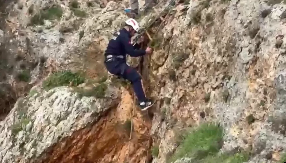 UÇURUMDAN DÜŞEN KÖPEK 4 SAATLİK ÇALIŞMAYLA KURTARILDI