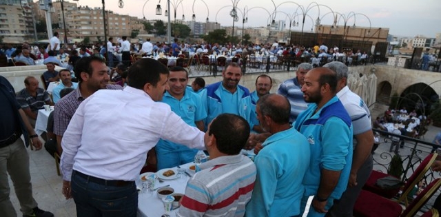 Özel bir mekanda düzenlenen iftar yemeğine ev sahipliği yapan Eyyübiye Belediye Başkanı Mehmet Ekinci, iftar saatine dakikalar kala tüm masaları tek tek dolaşarak personelleriyle tokalaştı.