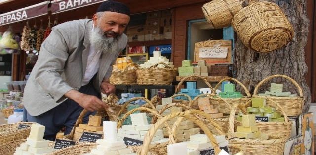 En çok tercih edilen sabunların keçi sütü sabunu ve eşek sütü sabun olduğunu belirten Sabuncu Mehmet Halil Akkuş, ? Bitkisel sabunlar doğal ev yapımı sabunlardır. Kimyasal madde katılmadan yapılıyor. Şuan 60 çeşit sabunumuz var. Bu sabunların içerikleri, yapımları ve etkileri farklıdır. Doğal sabunlar tüm cilt rahatsızlıklarına, saç dökülmesi, kepeğe, saç diplerindeki bakteriye ve lekelere karşı doğal olarak yaptığımız sabunlar çözüm oluyor. Eşek sütü sabunlar özellikle kadınlarda güneş lekelerine, sivilce, akne lekeleri ve kırışıklıklara iyi geliyor. Keçi sütü sabunlarda hem lekelere hem de düzenli olarak kullanıldığı zaman ten rengini beyazlatıyor. Saf defne sabunlarda ise 3 kademeli sabunlarımız var. Saf defne var, yüzde 50 defne ve yüzde 30 defneler vardır. Bunlar aşırı dökülen saçlara, normal dökülen saçlara iyi geliyor? dedi.