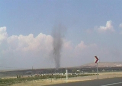 Şanlıurfa’nın Akziyaret köyünde kısa süreli dev hortum meydana geldi. Kısa süren hortum hiçbir şeye zarar vermeden son buldu.