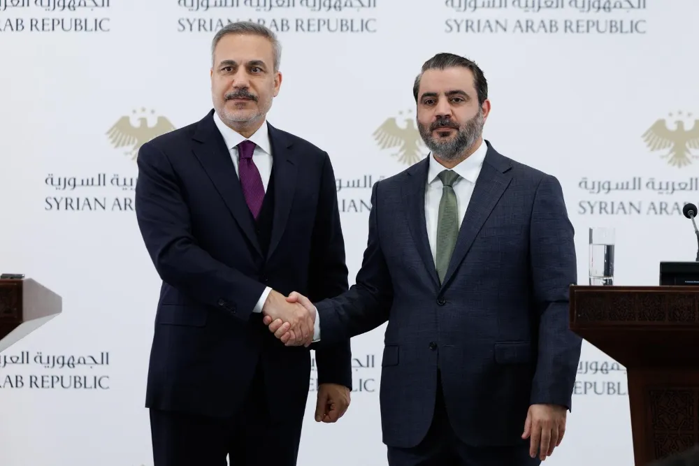 Dışişleri Bakanı Hakan Fidan, Suriye’deki temaslarının ardından Suriye Dışişleri Bakanı Esad Hasan Şeybani ile ortak basın toplantısı düzenledi. Basın toplantısında ev sahipliğinden ötürü Suriye Devlet Başkanı Ahmed eş-Şara’ya teşekkür ederek başlayan Fidan, Suriye’nin özgürleştirilmesinden sonra Suriye’ye ziyaret gerçekleştiren ilk dışişleri bakanının kendisi olduğunu ve bugün Suriye’nin özgürleştirilmesinin birinci yılından sonra Suriye’de bulunmanın gururunu yaşadığını ifade etti. Bakan Fidan, "Tabi biz başka bir formatta geldik. 3+3 formatı dediğimiz, Milli Savunma Bakanımız ve İstihbarat Başkanımız da beraberimizdeydi. Sayın Yaşar Güler ve Sayın İbrahim Kalın beraberliğinde, Sayın Ahmed eş-Şara ve Esad Şeybani olmak üzere birçok arkadaşla çok verimli görüşmelerde bulunduk. Önemli konuları tartıştık. Bölgesel konular, ikili konular, Suriye'ye ait konular. Bunların hepsini teker teker stratejik iş birliğimize yakışır şekilde detaylı bir şekilde ele aldık. Türkiye olarak bizim Suriye'nin istikrarına verdiğimiz önemi biliyorsunuz" dedi.