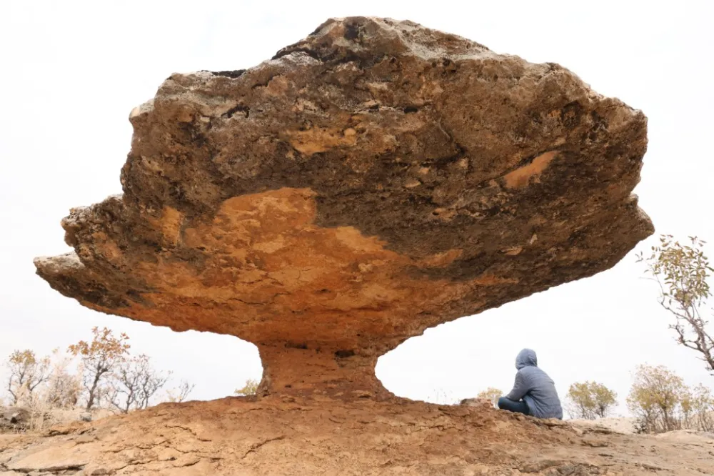 Diyarbakır’ın Kocaköy ilçesinde ince bir sütunla ayakta duran geniş kaya parçası, buzul çağı kalıntısı olarak değerlendiriliyor.