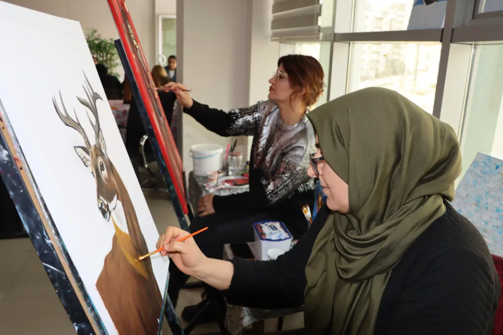 Necmettin Cevheri Kültür ve Gösteri Merkezi’nde, Karaköprü Belediyesi Kültür ve Sosyal İşler Müdürlüğü bünyesinde açılan kurslar, hem meslek edinme hem de sanatsal gelişim açısından önemli bir fırsat sunuyor. KARAMEK kursları kapsamında açılan resim kursu da dikkat çeken branşlar arasında yer alıyor. Toplam 25 kursiyerin katıldığı resim kursu, 2 grup halinde eğitim veriyor. Kurslarda yağlı boya, karakalem ve çeşitli resim teknikleri öğretilirken, kursiyerler aldıkları eğitimlerle birbirinden güzel eserler ortaya çıkarıyor. Resim kursuna katılan vatandaşlar, hem sanatla iç içe olmanın mutluluğunu yaşadıklarını hem de boş zamanlarını verimli bir şekilde değerlendirdiklerini ifade etti. Kursiyerler ayrıca, böyle bir imkânı kendilerine sunduğu ve sanata destek verdiği için Karaköprü Belediye Başkanı Nihat Çiftçi’ye teşekkür etti. Karaköprü Belediyesinin hayata geçirdiği KARAMEK kurslarıyla vatandaşlar hem yeni beceriler kazanıyor hem de sanatla buluşarak sosyal hayata daha aktif şekilde katılım sağlıyor.