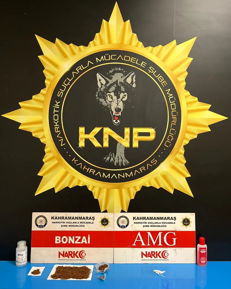 Kahramanmaraş Emniyet Müdürlüğü Narkotik Suçlarla Mücadele Şube Müdürlüğü ekiplerince operasyon gerçekleştirildi. 15 Şubat tarihinde yapılan çalışmalarda 9,01 gram metamfetamin, 2,46 gram sentetik kannabinoid (bonzai) ve 0,34 gram esrar maddesi ele geçirildi.