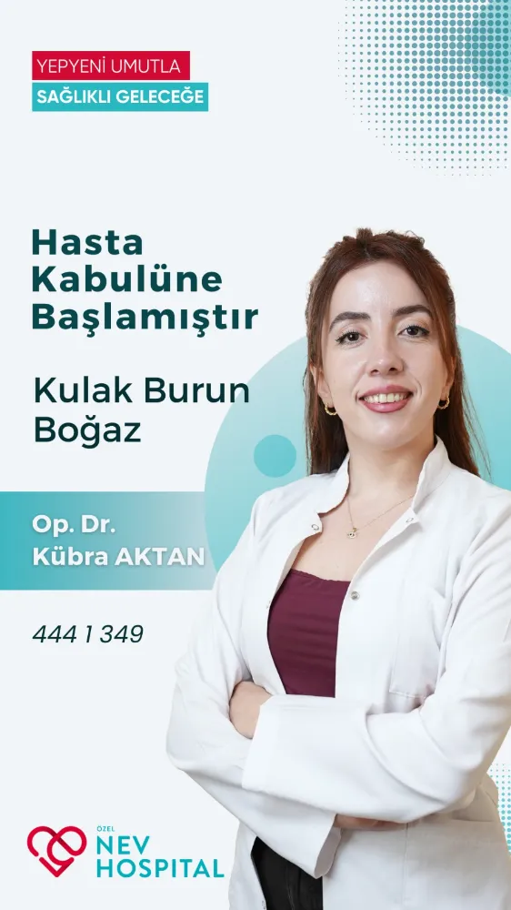 Kulak, burun ve boğaz hastalıklarının tanı ve tedavisinde hizmet verecek olan Op. Dr. Kübra Aktan, modern tıbbi imkânlar eşliğinde hastalarını kabul edecek.