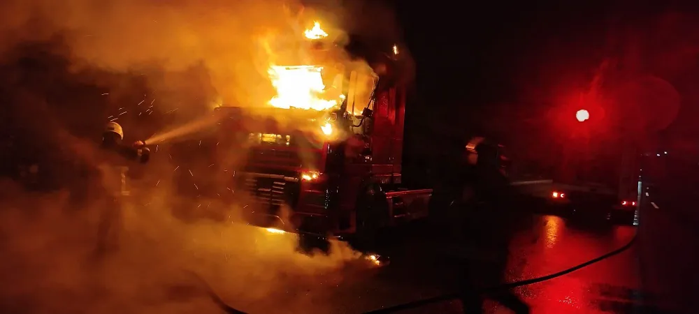ŞANLIURFA'DA SEYİR HALİNDEKİ TIR ALEV TOPUNA DÖNDÜ