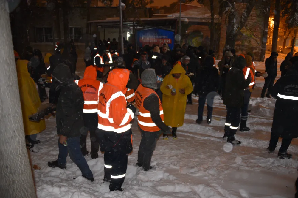 "Değerli mesai arkadaşlarım, karla mücadele kapsamında sabahtan bu yana yaklaşık 16 saattir sahadayız. Bu gece yılbaşı gecesi olmasına rağmen çalışmalarımıza aralıksız devam edeceğiz. Amacımız, sokaklarımızı ve caddelerimizi yarın sabaha kadar tertemiz ve güvenli bir şekilde vatandaşlarımızın kullanımına hazır hale getirmek. Bu süreçte hep birlikte güç birliği yaparak sabaha kadar çalışacağız. Ailelerinizle yeni yıla girme imkânınız varken, memleketimiz ve kentimiz için gösterdiğiniz fedakârlık çok kıymetli. Emekleriniz için hepinize ayrı ayrı teşekkür ediyor, çalışmalarınızda kolaylıklar ve başarılar diliyorum. Sağ olun, emeklerinize sağlık."