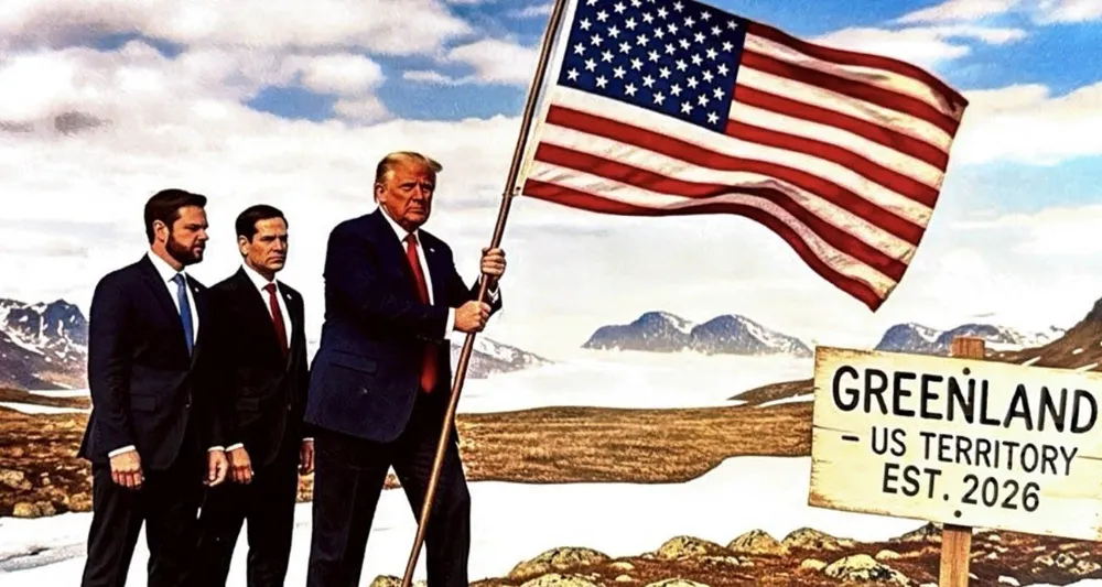 ABD Başkanı Donald Trump; ABD bayrağını "Grönland, ABD Toprağı, Kuruluş 2026" tabelasının bulunduğu alana dikerken tasvir edildiği paylaşımıyla "Grönland ABD toprağı olacak" mesajı verdi.