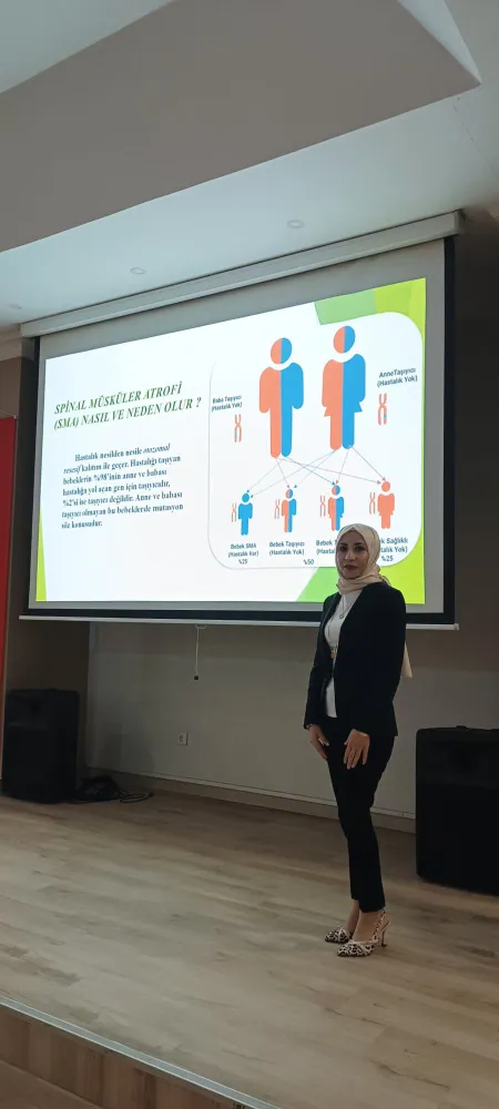 Seminerin konuşmacısı Yüsra Okay, SMA hastalığını bilimsel yönleriyle ele alırken, aynı zamanda hastalığın bireyler ve aileler üzerindeki etkilerine dikkat çekti. Okay, sunumunda SMA’nın genetik temelleri, hastalığın ilerleyiş süreci ve erken teşhisin hayati önemi hakkında kapsamlı bilgiler paylaştı.