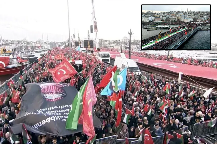 Yürüyüşe, Adalet Bakanı Yılmaz Tunç, Gençlik ve Spor Bakanı Osman Aşkın Bak, eski Ulaştırma ve Altyapı Bakanı Adil Karaismailoğlu, AK Parti Genel Başkan Yardımcısı Fatma Betül Sayan Kaya, Türkiye Gençlik Vakfı (TÜGVA) Başkanı İbrahim Beşinci ve çok sayıda vatandaş katıldı. Filistin'e destek için camilerin önündeki alanda toplanan vatandaşların ellerinde Türk ve Filistin bayrakları ile Galata Köprüsüne yürümeye başladı.
